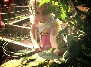 He picks two tomatoes straight off the vine and walks back to the swing set. A red beauty lands in my lap mid-swing. I jump off, red beauties folded up in my summer shirt, and join him closer to the garden.