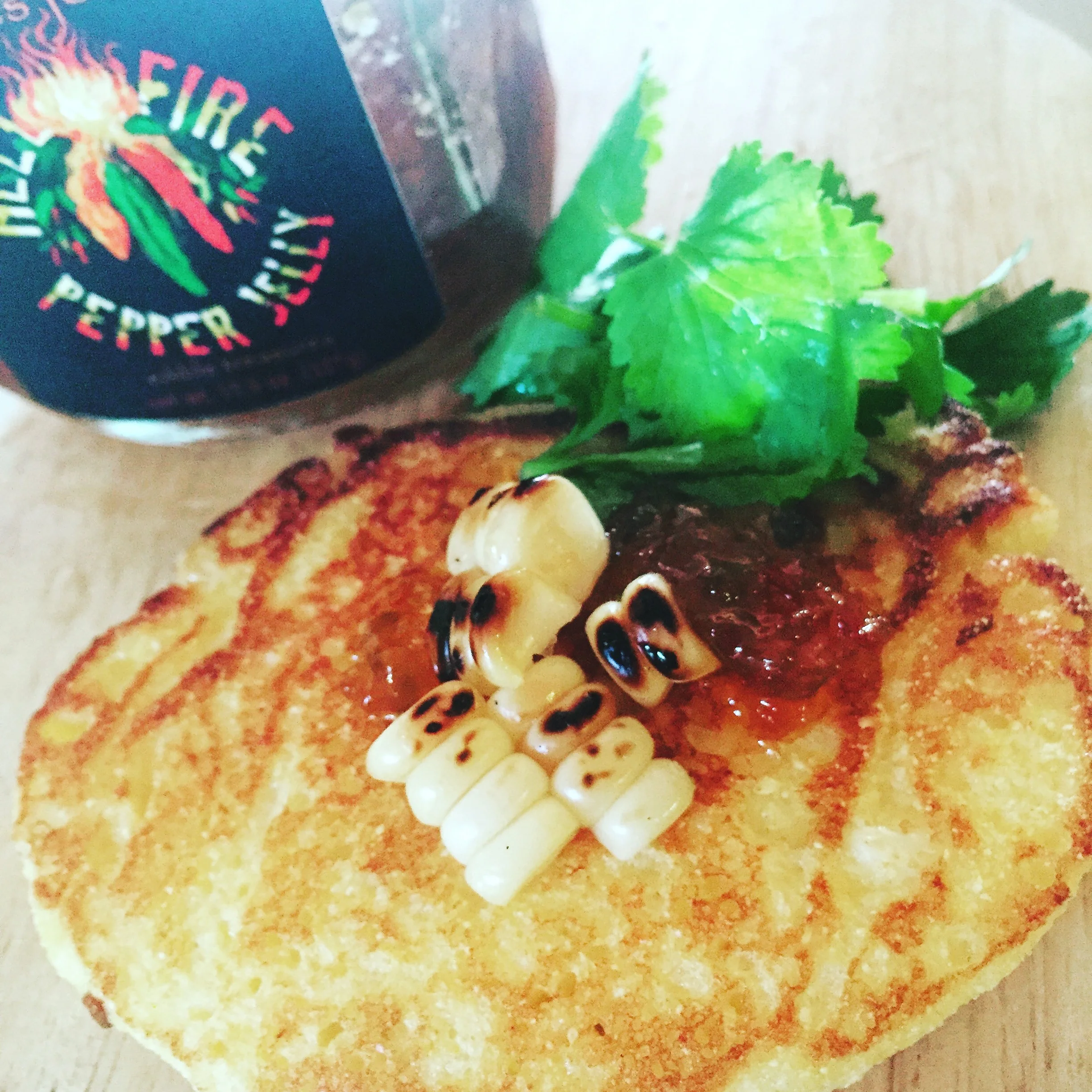 Fresh Corn Cakes with Hell Fire Pepper Jelly